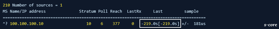 - 아래 명령 실행 시 현재 서버가 NTP 서버와의 시간이 219초 차이 난다는 것을 알 수 있습니다.