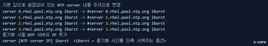 ntp.conf 파일의 서버 선언 부분에 iburst 옵션 추가