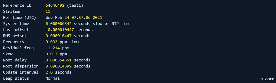 [root@ ~]# chronyc tracking