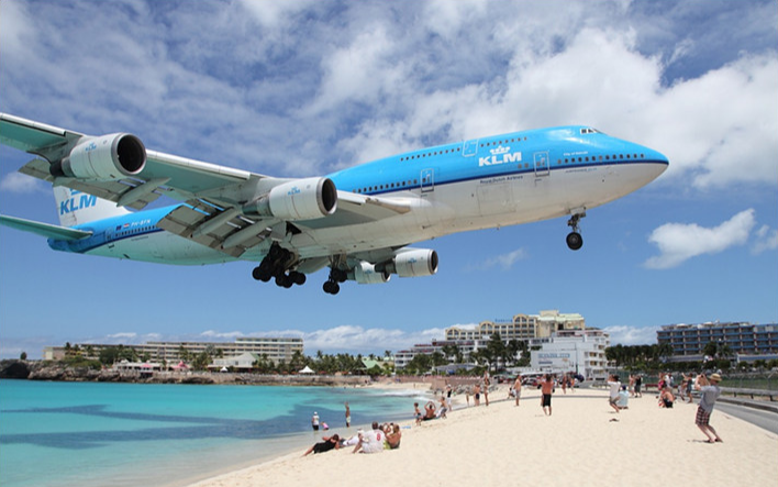 오늘은 Prepare3D로 PMDG 보잉 747-400으로 휴양지로 유명한 프린세스 줄리아나 공항에서 이륙해 본다. 세계에서 가장 위험한 공항 중에 하나다. 해변 옆에 바로 활주로가 붙어 있다.
