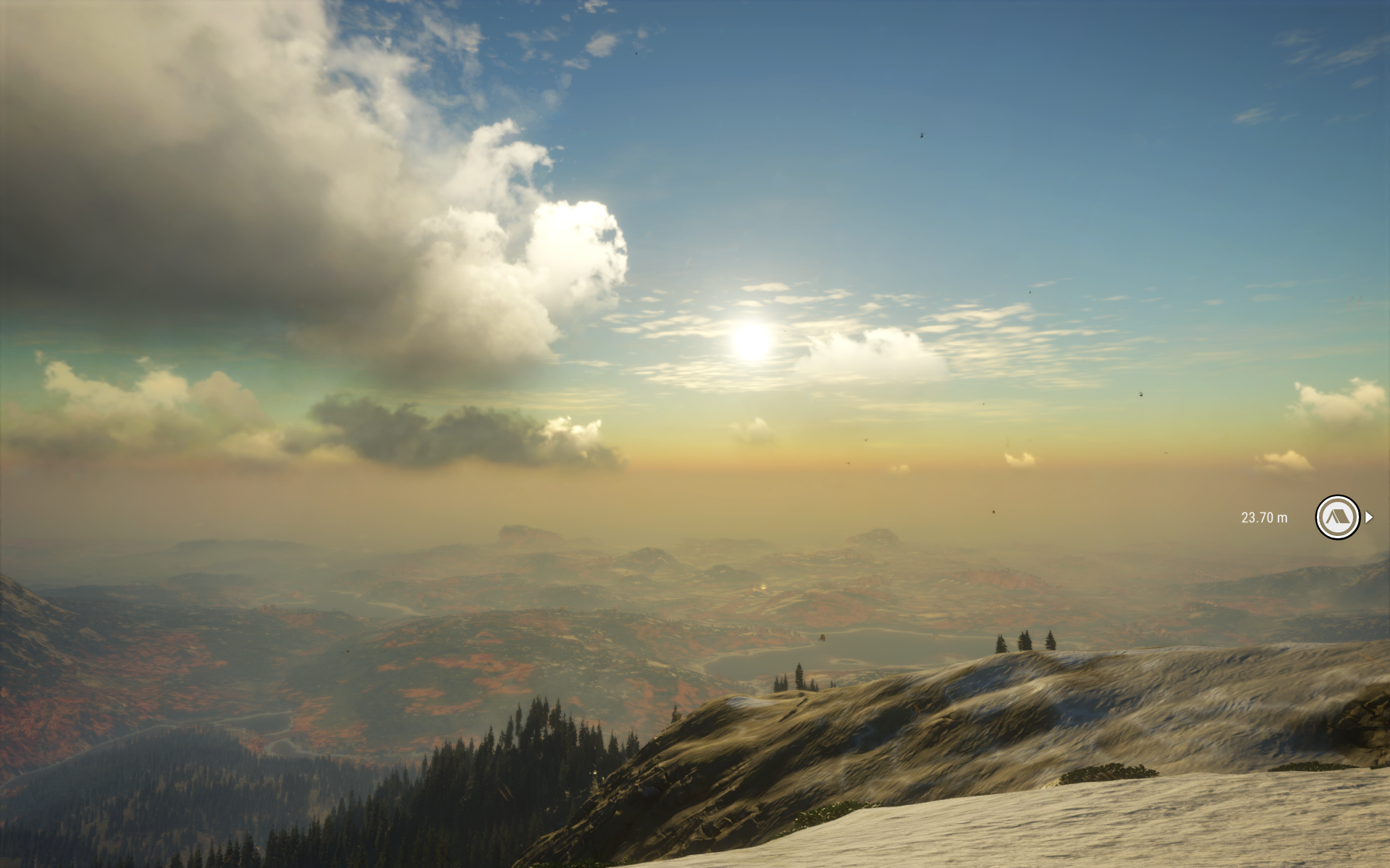 정상에는 넓은 눈이 덮인 평원이 보인다.