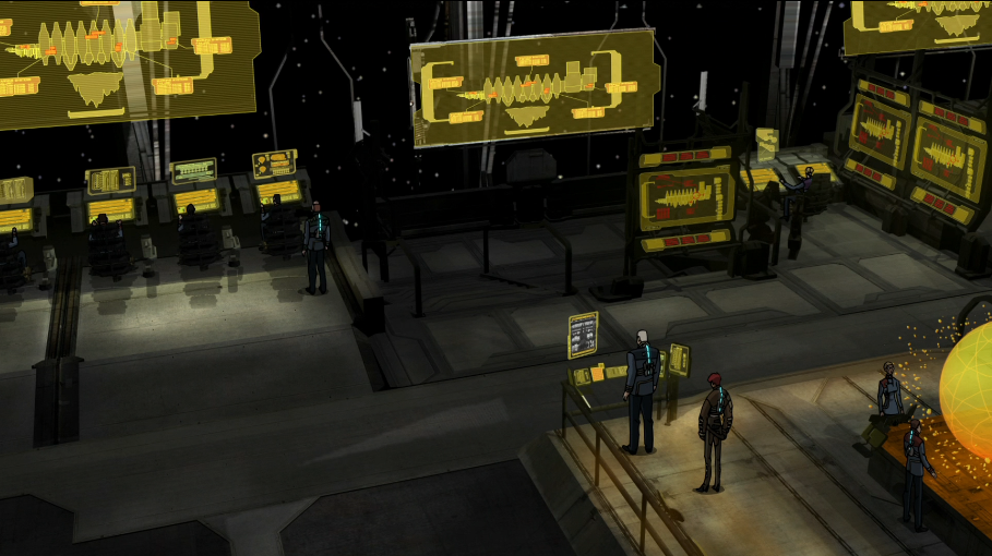 그리고 이미 함락되어 네크로모프만 배회하는 선교에 갑자기 아이작 클라크가 타고 있는 USG 켈리온으로부터 교신이 들어온다. 즉, 이 작품은 데드 스페이스 1편 게임의 시작과 이어지게 된다.