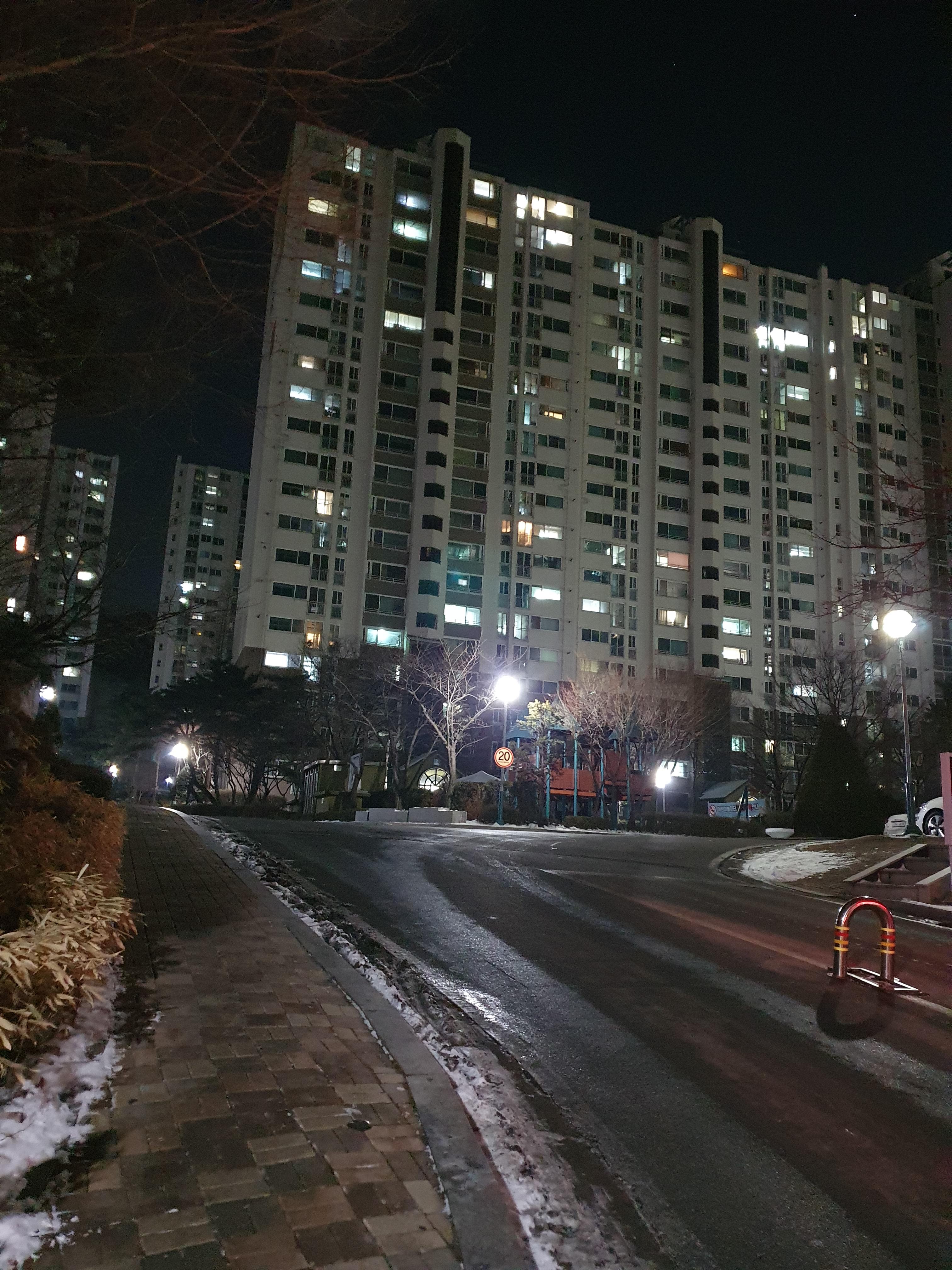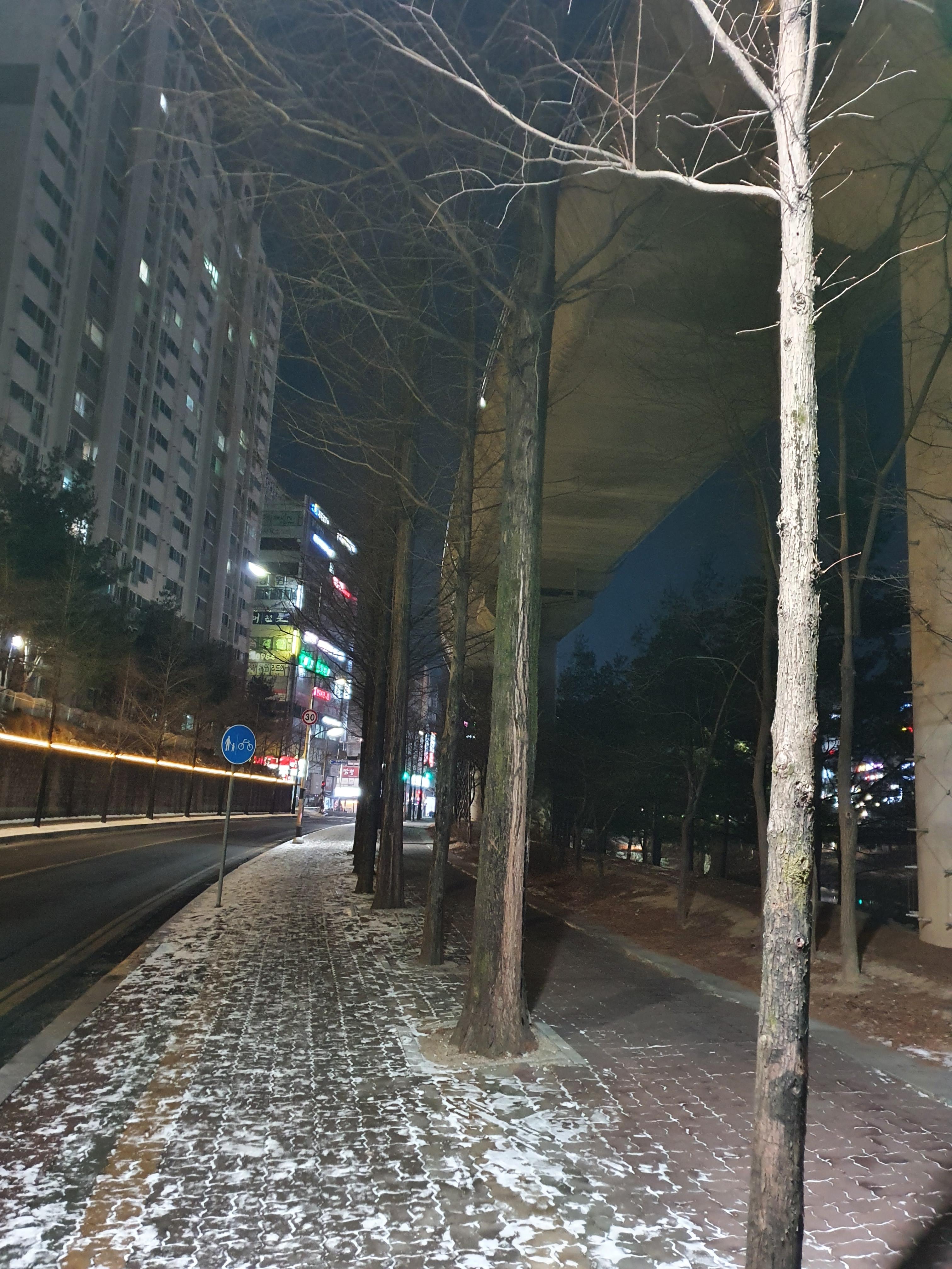 집으로 돌아오는 추운 겨울. 눈이 아직 안녹아서 미끄럽다.