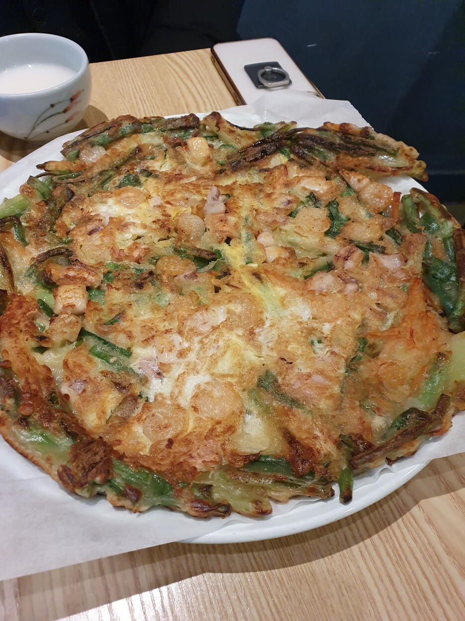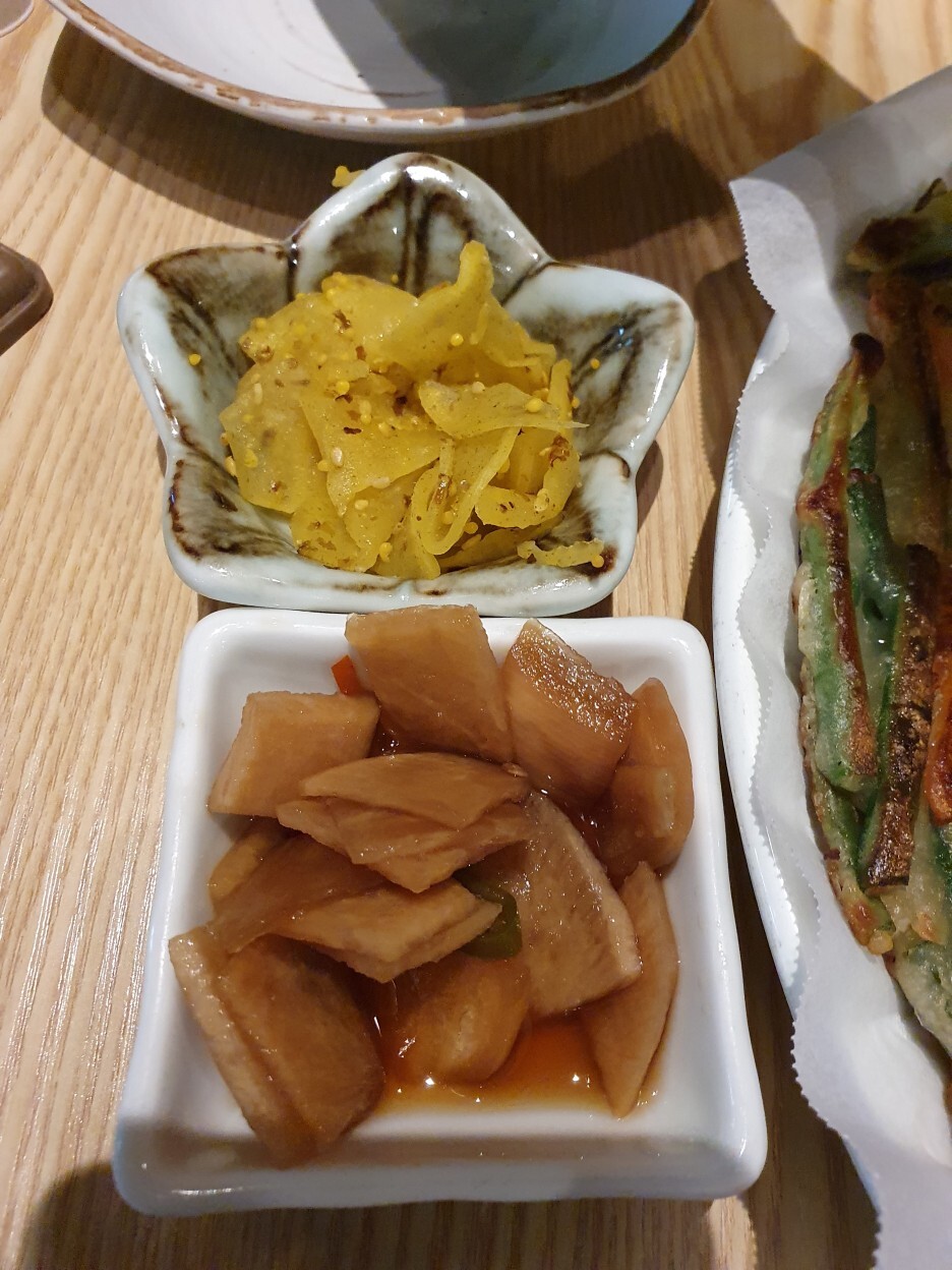 안주로 파전을 시켰다. 사이드 반찬을 별거 없지만 메인 안주가 맛도 있고, 양도 많았다