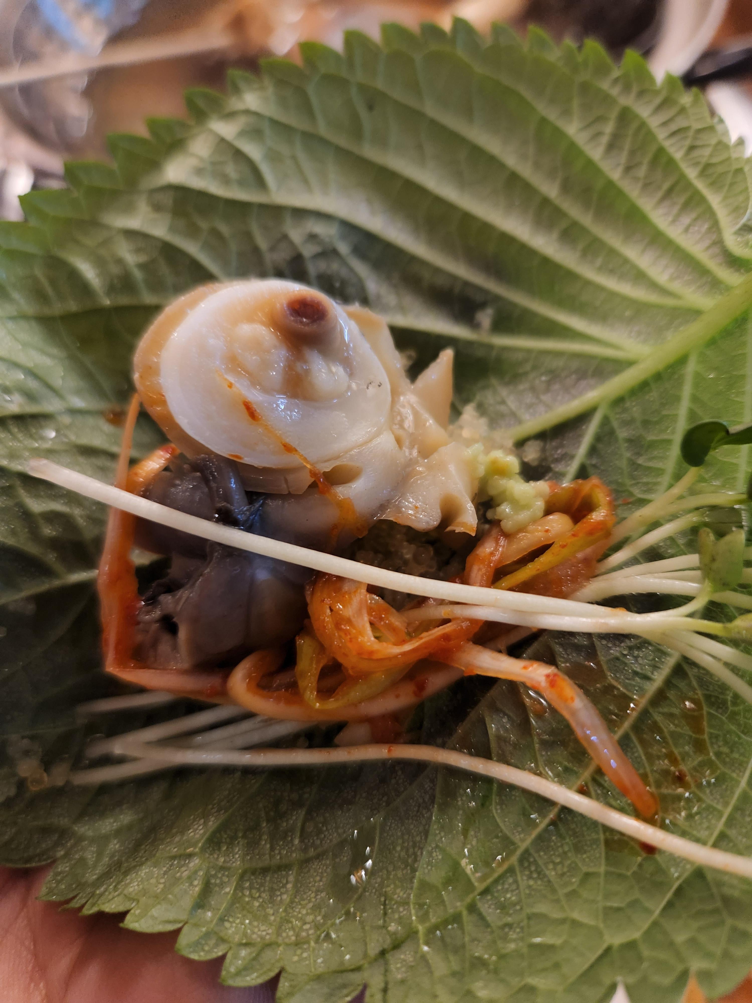 통골뱅이 속을 있는 그대로 살살 조심조심 꺼내본다. 똥까지 아주 깨끗하게 나왔다. 근데 저 똥이 정말 고소하다능..ㅎㅎㅎ