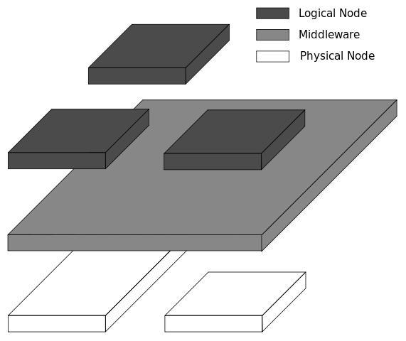 미들웨어 소프트웨어 아키텍처는 통신을 통해 데이터 파이프라인을 생성하는 여러 개의 구성 요소로 이뤄져 있습니다. 데이터는 미들웨어를 통해 하나의 연결된 애플리케이션에서 다른 애플리케이션으로 이동합니다. 미들웨어는 호환성을 위해 데이터를 처리합니다. 미들웨어 소프트웨어의 공통 구성 요소는 다음과 같습니다.
