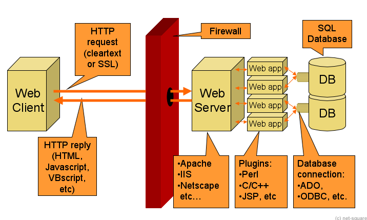 - Client -> Web Server -> DB