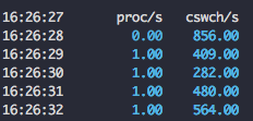 process 가 OS 의 도움을 받아야 하는 작업(file IO 등)을 수행할 때 sy 의 수가 늘어날 것임 - cs : context switch. 초당 CPU 내에서 Process 간 Context 정보를 교체하는 횟수