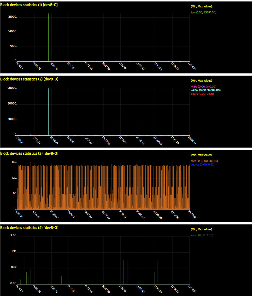 sar -f /var/log/sa/sa23 -A -s 19:20:00 -e 19:40:00 --human ## 19:20 ~ 19:40 사이의 모든 지표를 본다 (--human 옵션은 byte, kb, mb, gb 등 단위를 보기 편하게 자동 변환해주는 옵션)