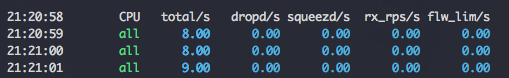 + dropd/s : processing queue 부족으로 drop 된 network frames 수