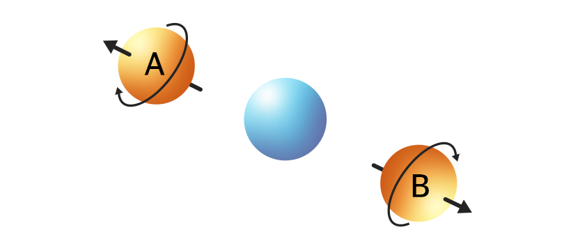 ▲ EPR 역설에 의한 스핀 방향 결정 사고실험
